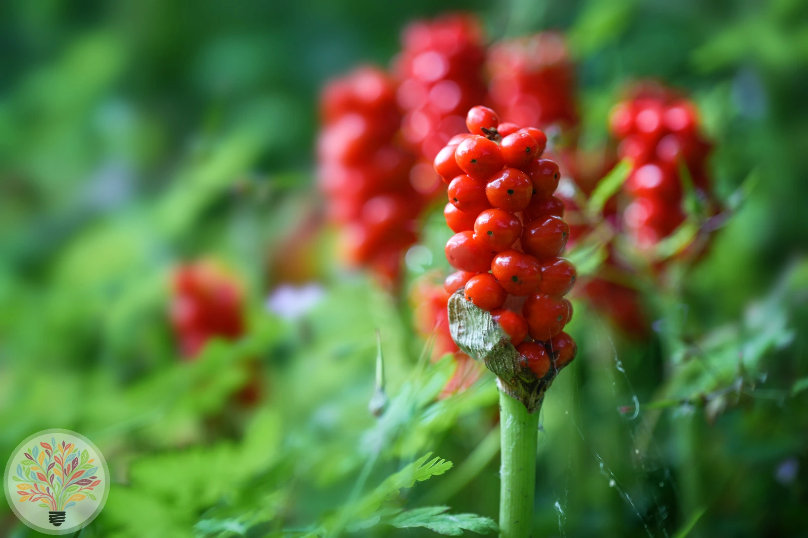 Pflege: Der Aronstab zieht nach der Samenreife im Frühsommer komplett ein; schneide das Laub nicht vorzeitig ab, damit die Kraft in die Knolle zurückfließen kann.